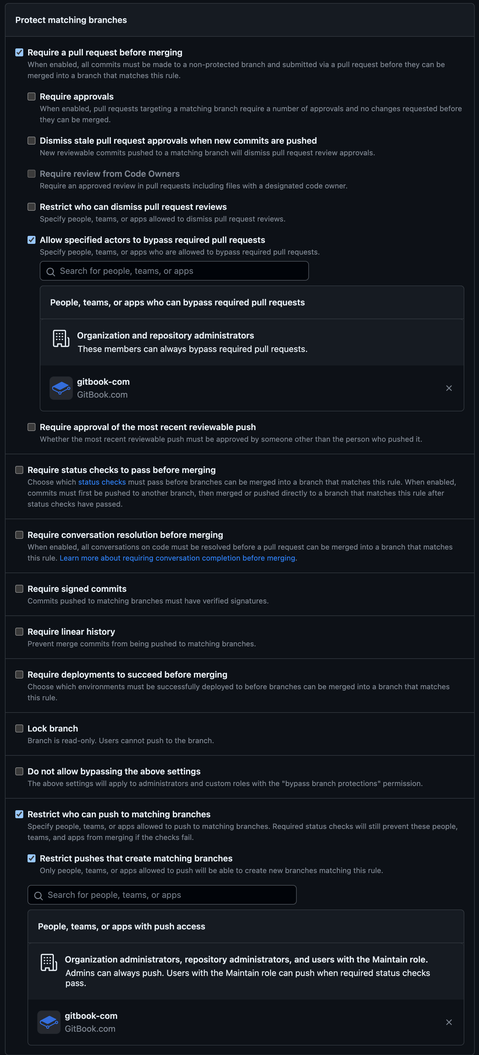 Error: Missing permissions to push to the refs/heads/main protected branch. Check your branch configuration on your git provider.Supported branch protections